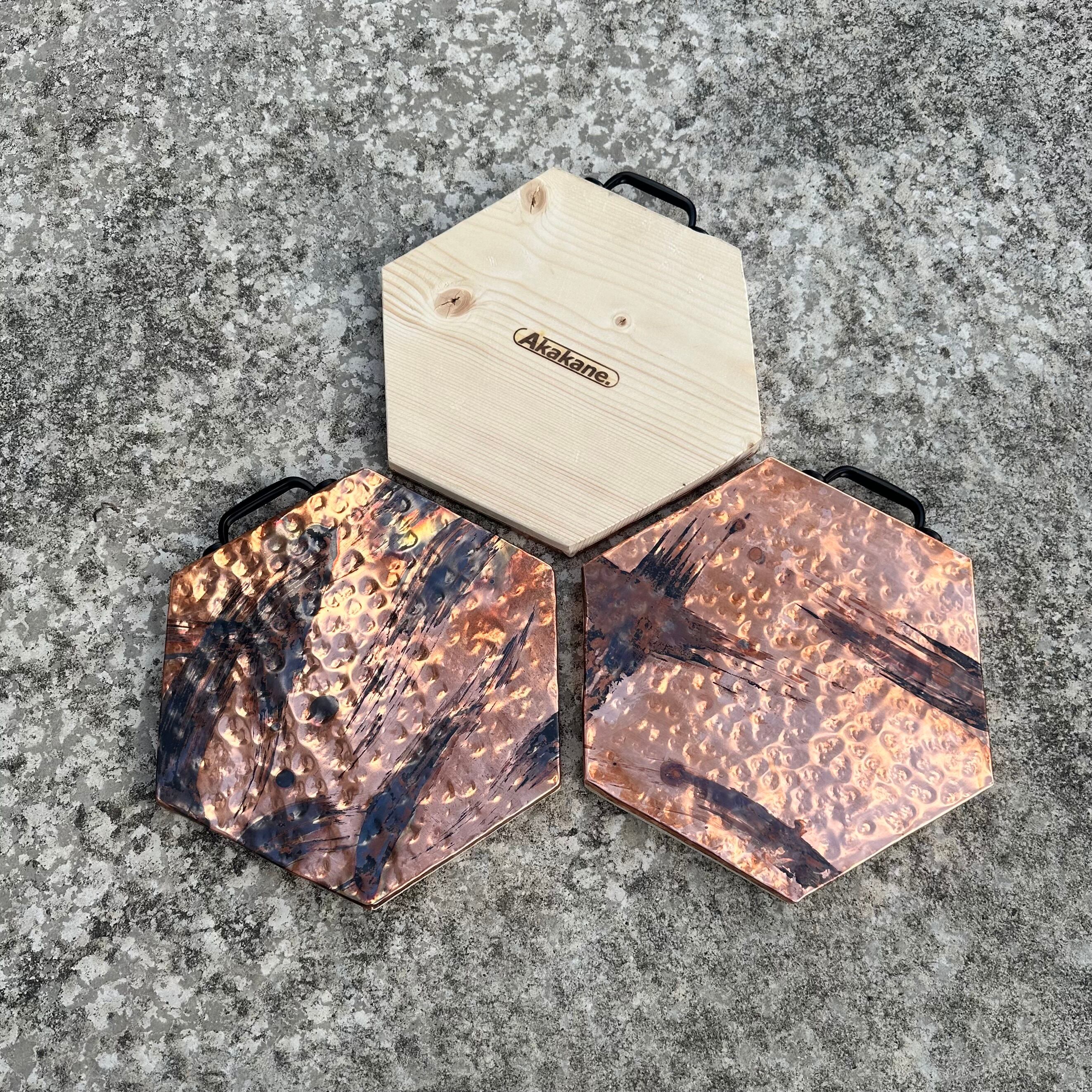 AKAKANE./銅 槌目 六角 鍋敷【煤走】